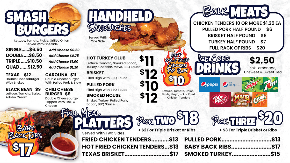- Signature dishes include delicious pulled pork sandwiches and their famed smashed cheeseburgers, which have received rave reviews for their rich flavors and generous portions.